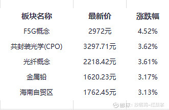 今日涨幅居前的板块以科技(如F5G、CPO)和资源(如金属铅) 为主,无显著跌幅板块(参考未覆盖)。