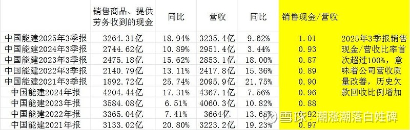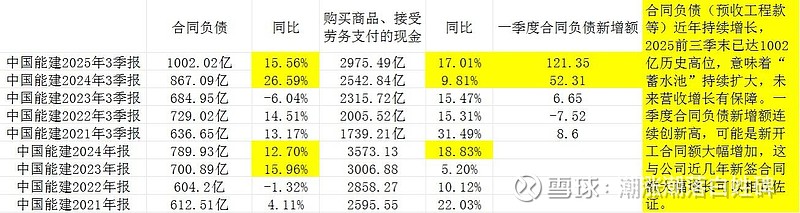 今天我重看中国能建3季报,发现几个有意思的数据,特地把历年数据做了一张表研究。研究过程我把表截图给诸位看,研究结论是: