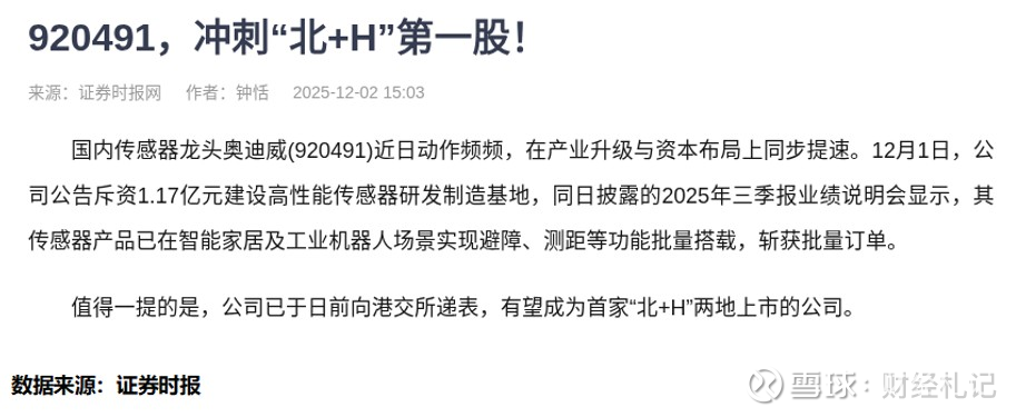 看到奥迪威要投资1.17亿建新厂的消息时,我正在研究最近的市场数据。这家传感器龙头企业不仅在国内布局三大生产基地,还准备冲刺港股IPO,成为首家“北+H”上市企业。说实话,这种产业升级和资本运作的双轮驱动模式,让我想起了很多投资中的关键问题。