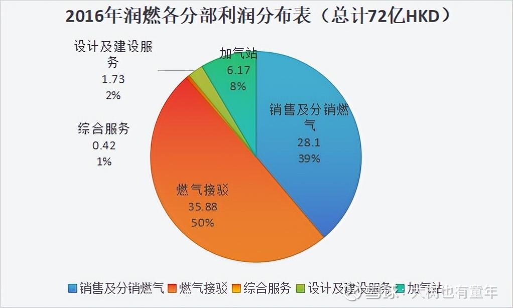 透过两张图的对比,可以看出接驳业务的盈利已从润燃的半壁江山缩减到16%。而以厨电燃热、保险代理和安居业务为主的综合服务,盈利占比正在提升。
