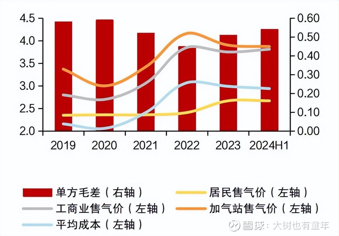 2022年的0.45元/立方米回升至2023年的0.51元/立方米,2024年为0.53元/立方米,2025年指引值为0.54元/立方米。