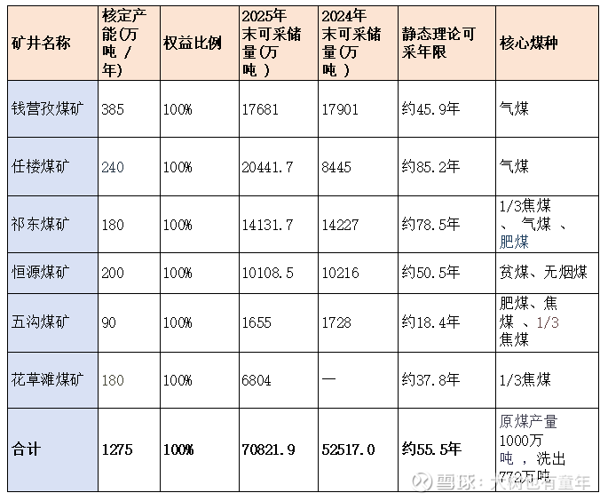 资源储备稳步提升。截至2025年末,公司合并报表可采储量达7.08亿吨,较2024年末增长1.83亿吨,增量主要来自两方面:一是2025年四季度完成收购甘肃花草滩煤矿,新增可采储量6804万吨,煤种为1/3焦煤,配套180万吨/年产能与300万吨/年选煤厂;二是本部主力矿井完成储量动态更新,进一步延长了矿井服务年限。按当前核定产能测算,公司静态可采年限约55年,资源接续能力处于行业中等偏上水平。