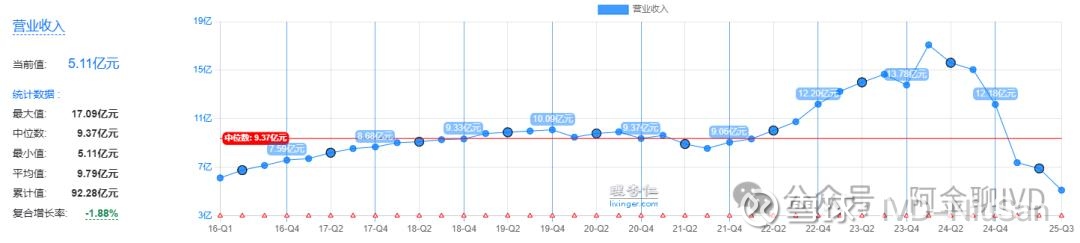 营业收入陡降,25年三季度TTM仅5亿元