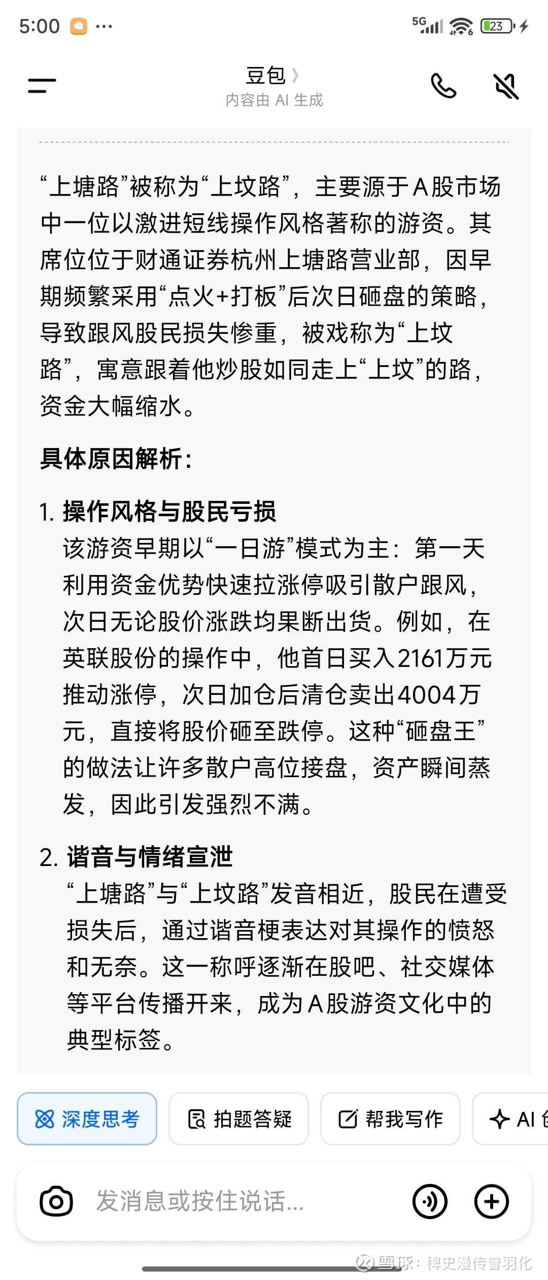 回复@稗史漫传曾羽化: 老师,像野马电池这种后排马,拿多久呢//@稗史漫传曾羽化:回复@勤勉的赚钱小手套:上塘路老师水平是很高的,没有任何贬低他的意思,但是他的习惯是一旦不走强,他都是直接干。当然也不是百分百,只是不乐观吧,后排套利的小盘我天马和万里马都有,明天可能得出万里马的部分转天马,我是挺怕上塘路老师的。 查看图片