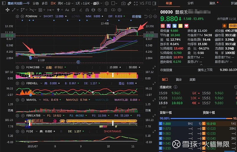火貓對這隻財技股比較熟悉, 買了半注後一直跟蹤盤路, 沿紅色飄帶以小幅升, 最近把1手數量拆細為一千, 要預準跌穿紅色飄帶下沿時沽出, 今早跌穿時還寄望收上去, 但最後決定先沽出為上策,現金才是自己的錢!💰💰
