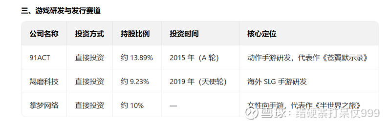 通过直接投资、子公司及产业基金等方式,重点布局 AI、脑机接口、游戏研发、XR 等领域,以下为其投资的知名公司及核心持股信息(按赛道分类,数据以公司公告、互动平台及公开披露为准):