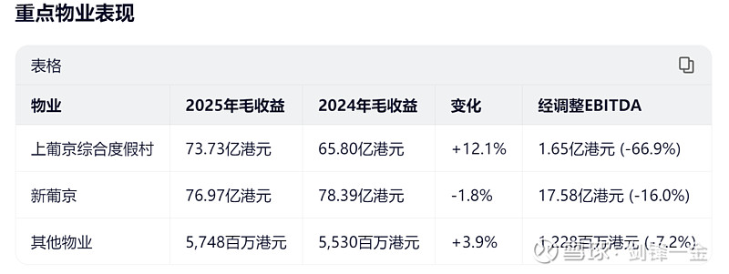 2025年12月收购凯旋门酒店物业(2025年12月下旬起以自营物业营运)2025年11月启动葡京酒店"水晶宫"投入营运2026年中前计划完成葡京酒店第二期升级