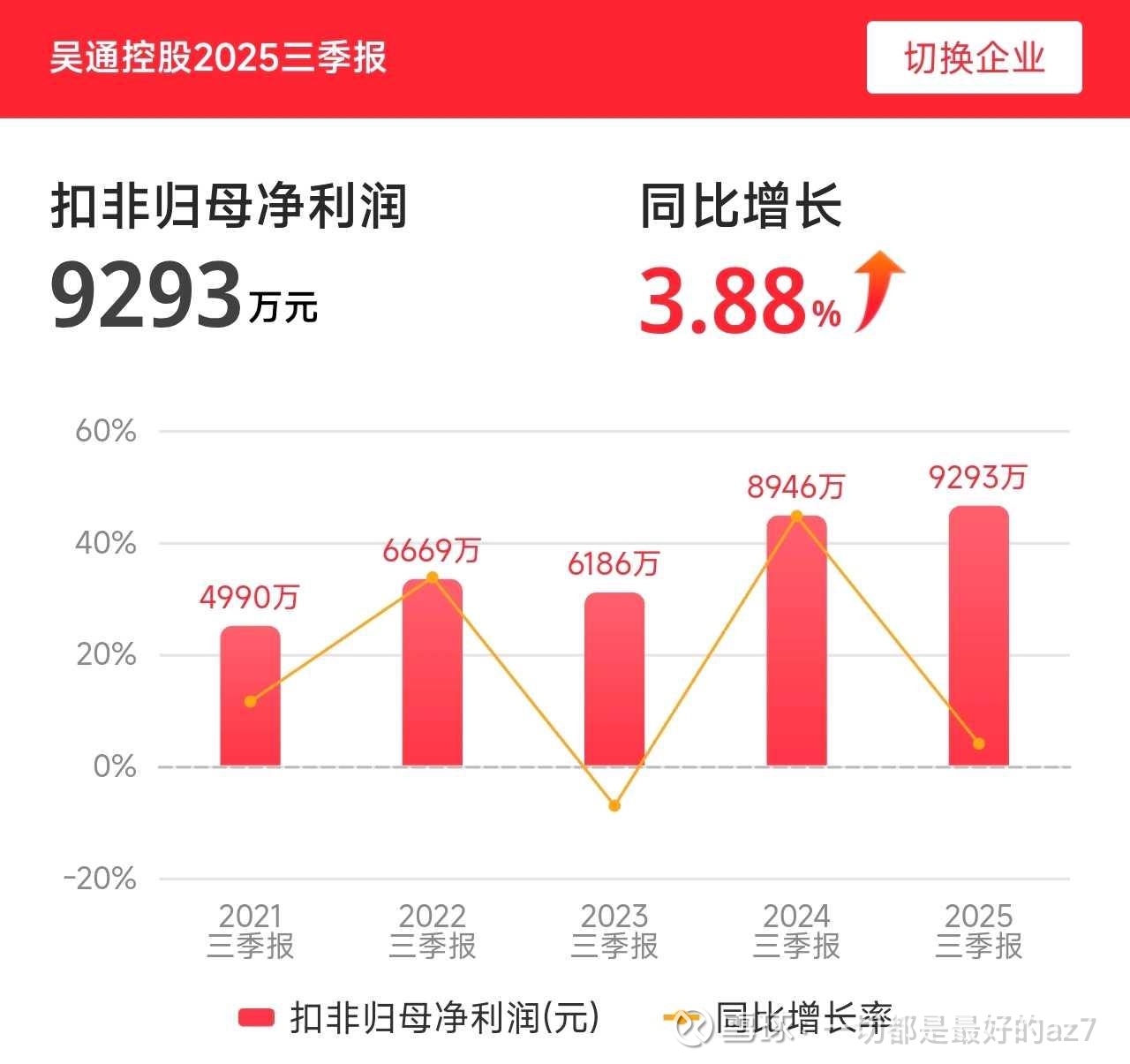 $吴通控股(SZ300292)$ 2025年三季报扣非净利润9293万元,同比增长3.88%,虽增长幅度不如前两者,但也实现了正向增长。