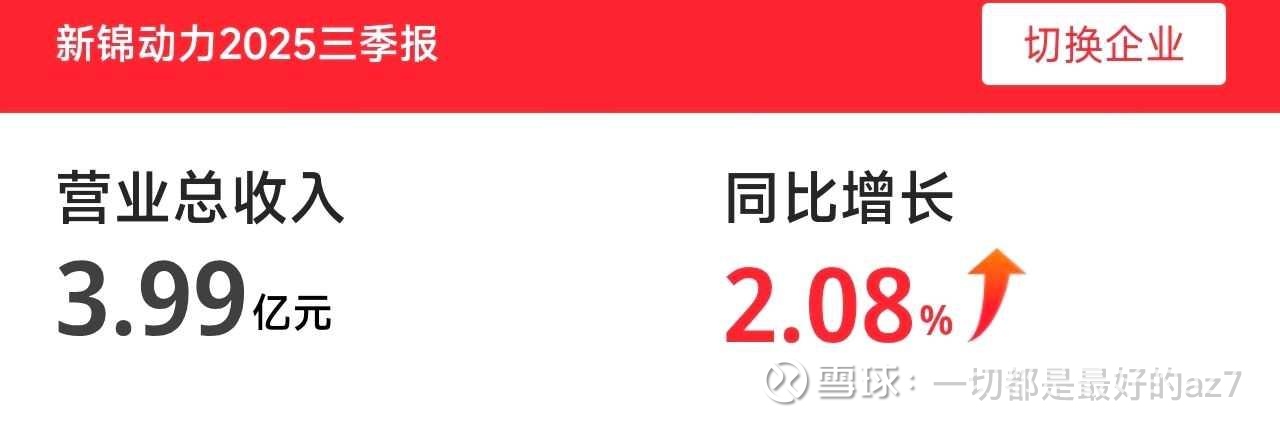 $新锦动力(SZ300157)$ 三季报显示,营收3.99亿元,同比增长2.08%;