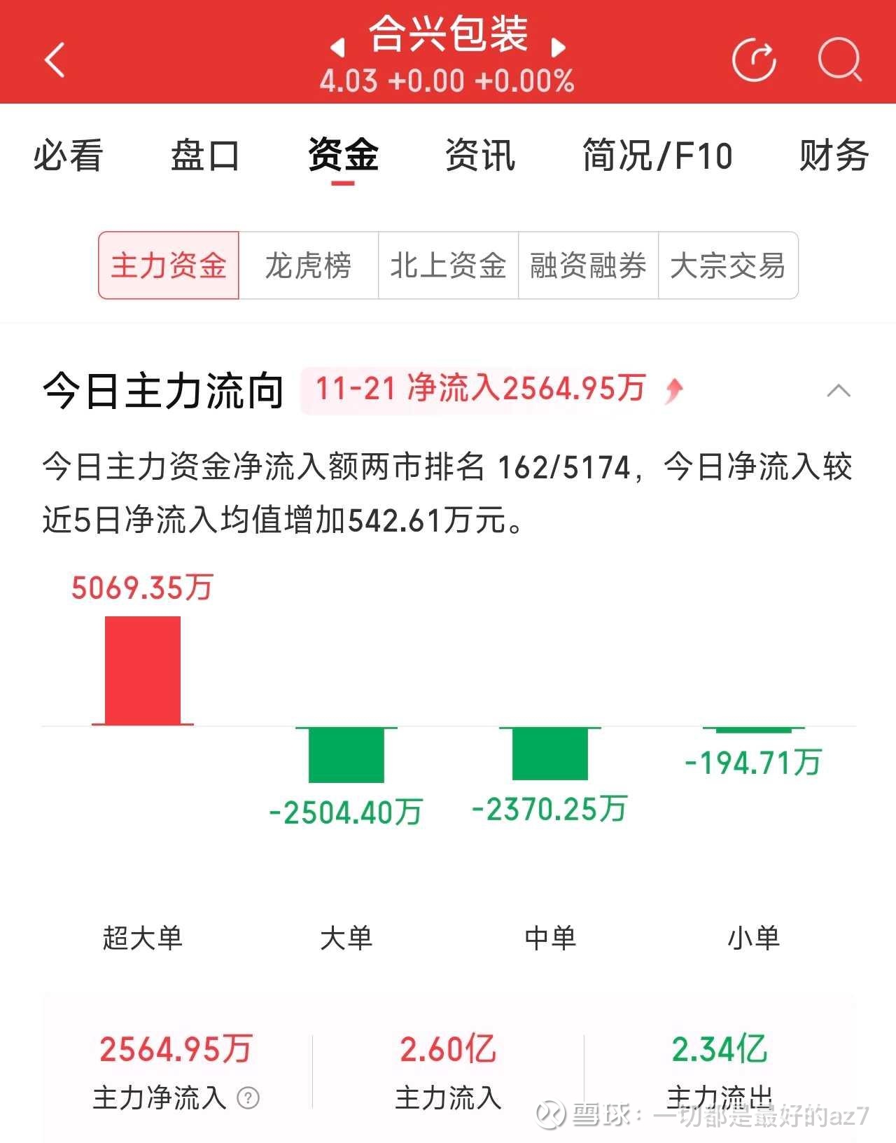 在这场恐怖的风暴中,合兴包装宛如一位无畏的勇者,在狂风恶浪中奋力搏击。主力资金如同黑暗中的希望之光,大量涌入,当日主力资金净流入高达2564.95万,在两市主力资金净流入额排名中位居162/5174。