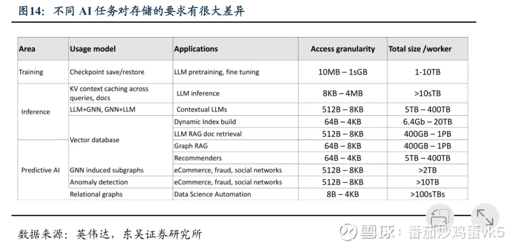 AI训练依赖大量数据的批量传输,单轮数据块尺寸在MB级以上,但是AI推理完全不同,缓存访问粒度仅8KB-4MB,向量数据库检索、推荐系统的特征读取更是低至64B-8KB,但需要支持千条并行线程的并发请求,总量更是突破TB级。