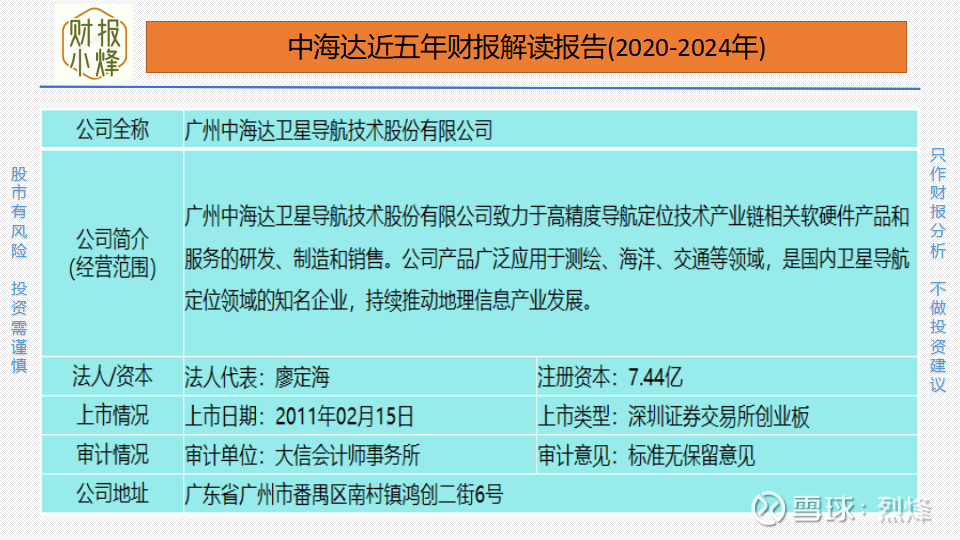 通过上图,我们对中海达是做什么的、从事什么行业以及做得怎么样有了大概了解。但这些还不够,想要进一步了解该公司,还需要对其财报进行深入分析。财报小烽只分析审计意见为“标准无保留意见”的上市公司,因为该公司的财报真实性和准确性都比较高,朋友们应该远离不是此意见报告的公司。