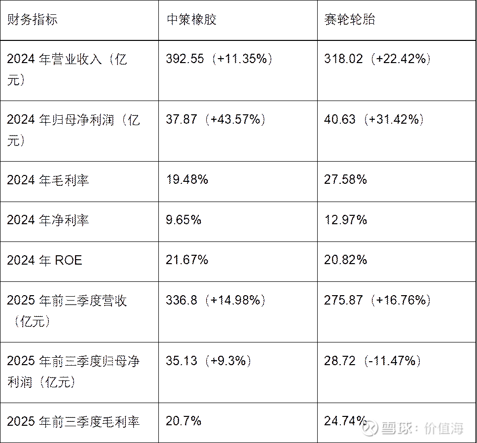 根据 2024 年年报及 2025 年最新财务数据,中策橡胶和赛轮轮胎的盈利能力对比如下: