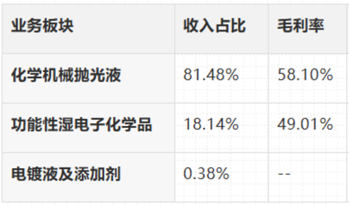 国内格局:CMP抛光液第一;清洗液国内领先。