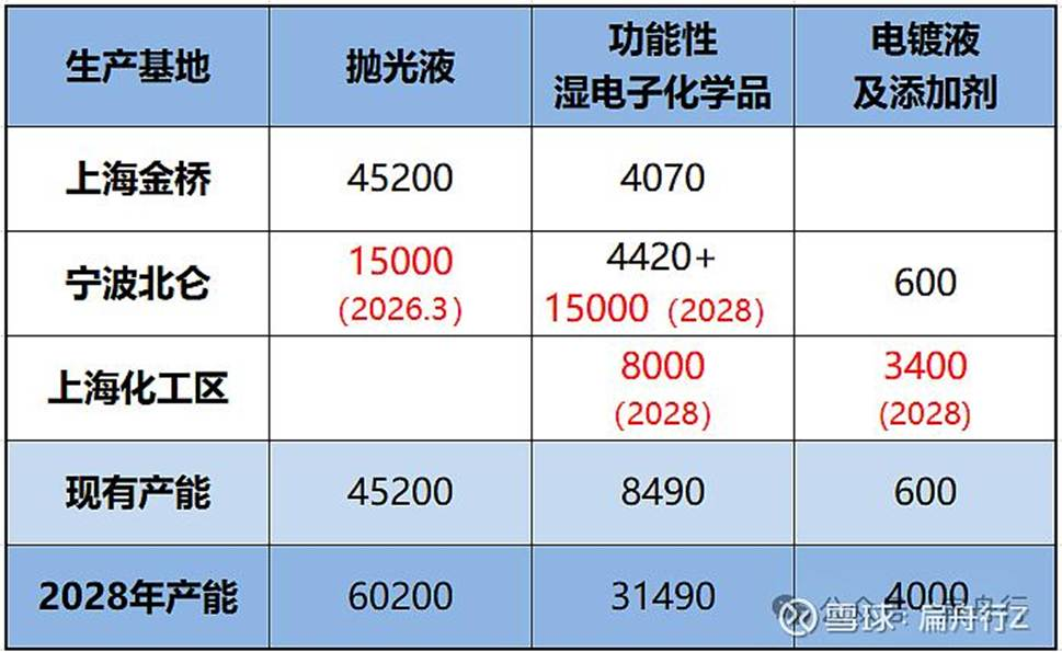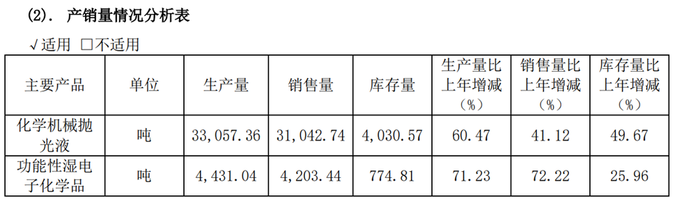 关键原材料这块,没有历史数据,不好推算。(上海1,200 吨电子级添加剂和 500 吨纳米磨料生产能力。宁波400 吨电子级添加剂。)