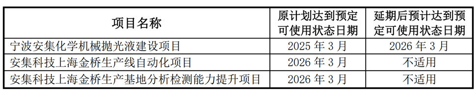 《安集微电子科技(上海)股份有限公司 关于部分募投项目延期的公告》