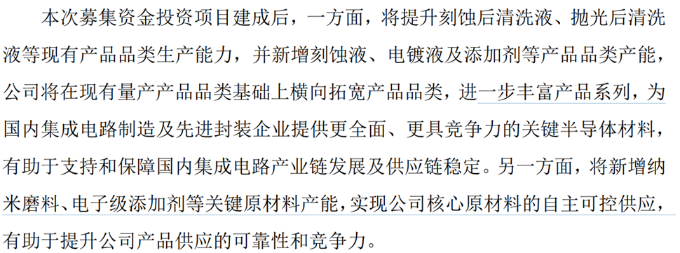 功能性湿电子化学品:8,000 吨刻蚀液、(自有资金)