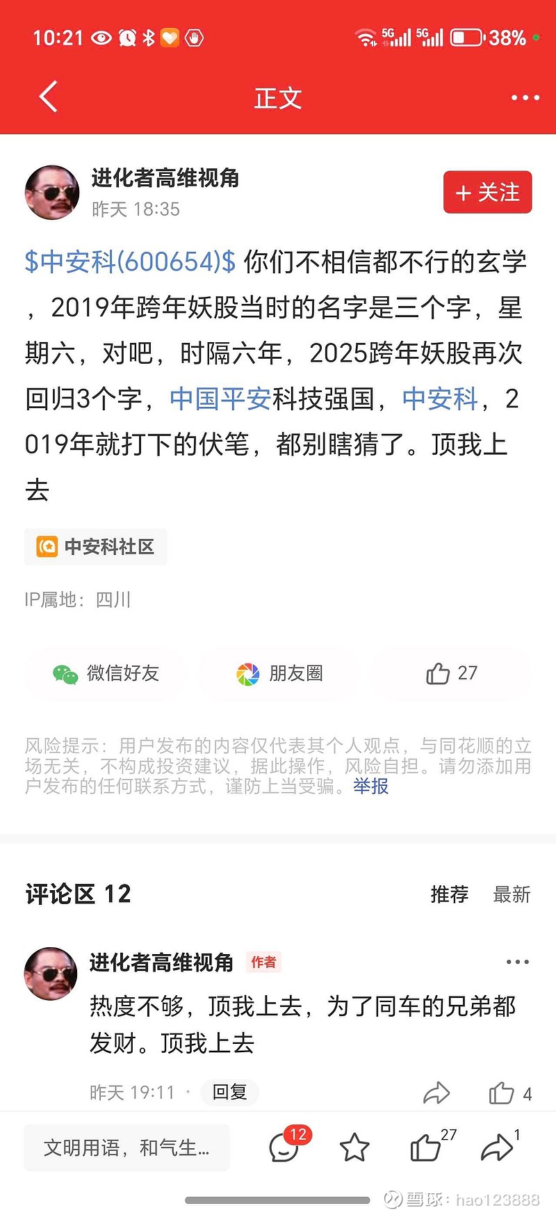 $中安科(SH600654)$ 中国的人才果然很多: 你们不相信都不行的玄学,2019年跨年妖股当时的名字是三个字,星期六,对吧,时隔六年,2025跨年妖股再次回归3个字,中国平安科技强国,中安科,2019年就打下的伏笔,都别瞎猜了。顶我上去
