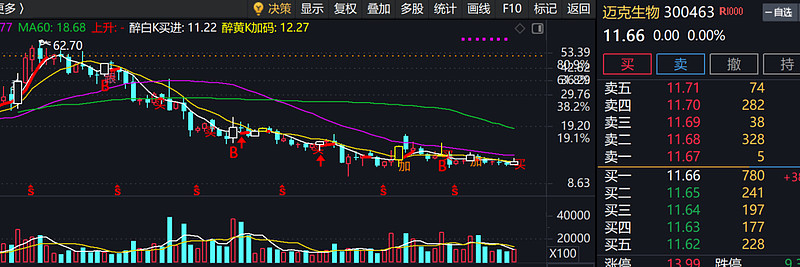 股市大盗迈克,走势。最高62.7,现在11.66.反弹0.382也算一种好方向。涨到最高价一半,就是31元。不知股市大盗迈克能不能给面子。