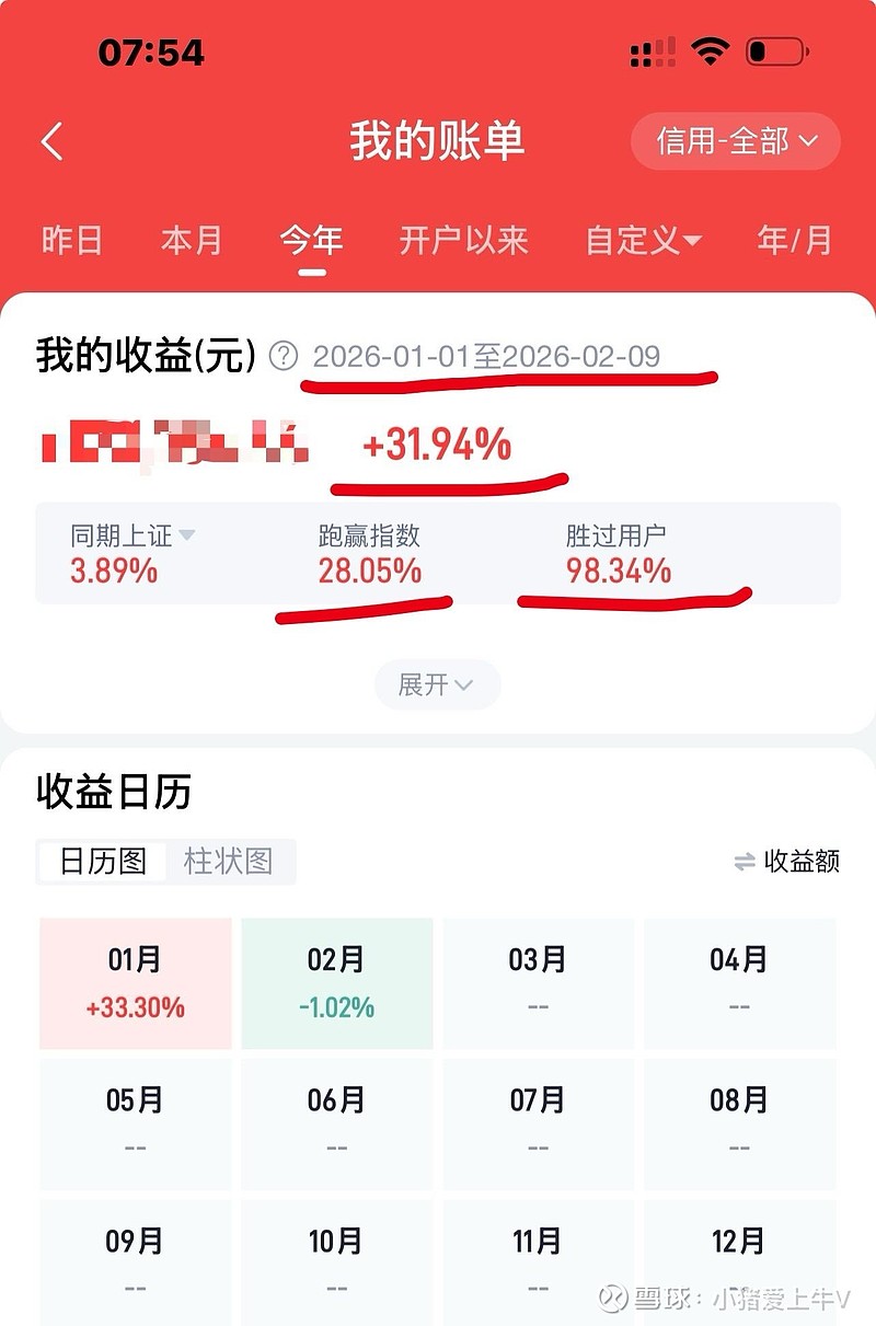 2026年以来,上证指数上涨3.89%,小猪实盘盈利31.94%跑赢大盘28.05%,跑赢A股98.34%的投资者。新的追梦路上,期待有你的相伴。欢迎关注点赞,一起拥抱伟大的公司!