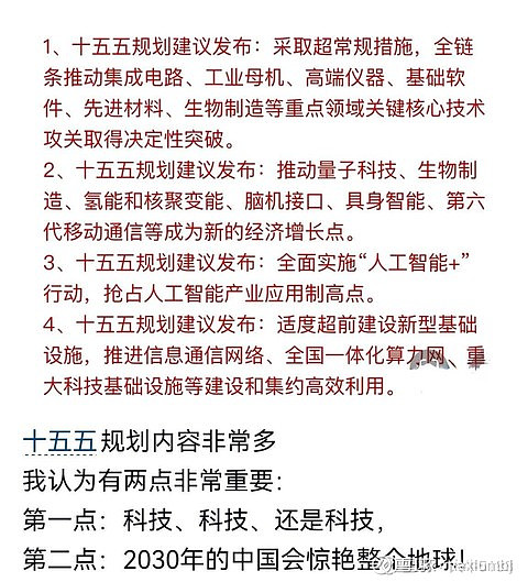 $国盾量子(SH688027)$ 国家十五五规划的建议发布,着重强调了 “量子科技 ” ,因为这个领域一旦突破,就是对 AI 人工智能, 数字金融,生物科技.... 等的一些降维打击。