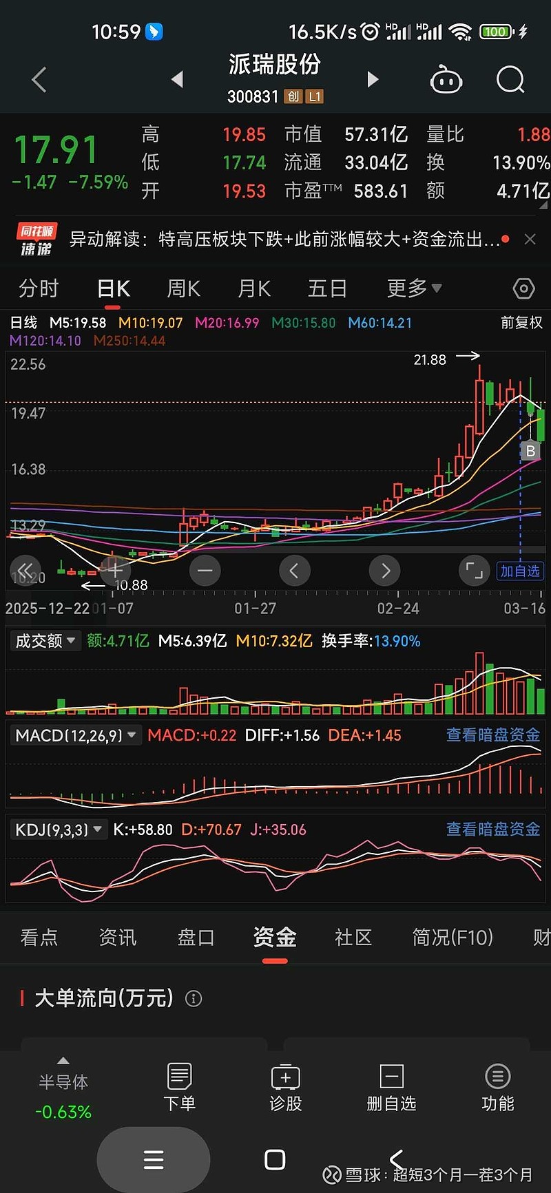 $派瑞股份(SZ300831)$ 所以这就是我不愿意关注任何大v的原因,我已经好久没有跟买过大v的票了,就上周五我有点票荒了,选不到模式内合适的股票了,就从唯二关注的一个大v里跟买了两个票,还有一个是郑中设计,结果你看,今天这派瑞股份跌到哪里去了,现在彻底把大v清理干净了,我自己选的股票都是市场票,涨跌不是一个两个大户的买卖能控制的,逻辑和涨跌我懂,心里有谱,涨跌我都不怕,可是跟大v买的偏僻票逻辑和涨跌我不懂啊,心里没谱啊