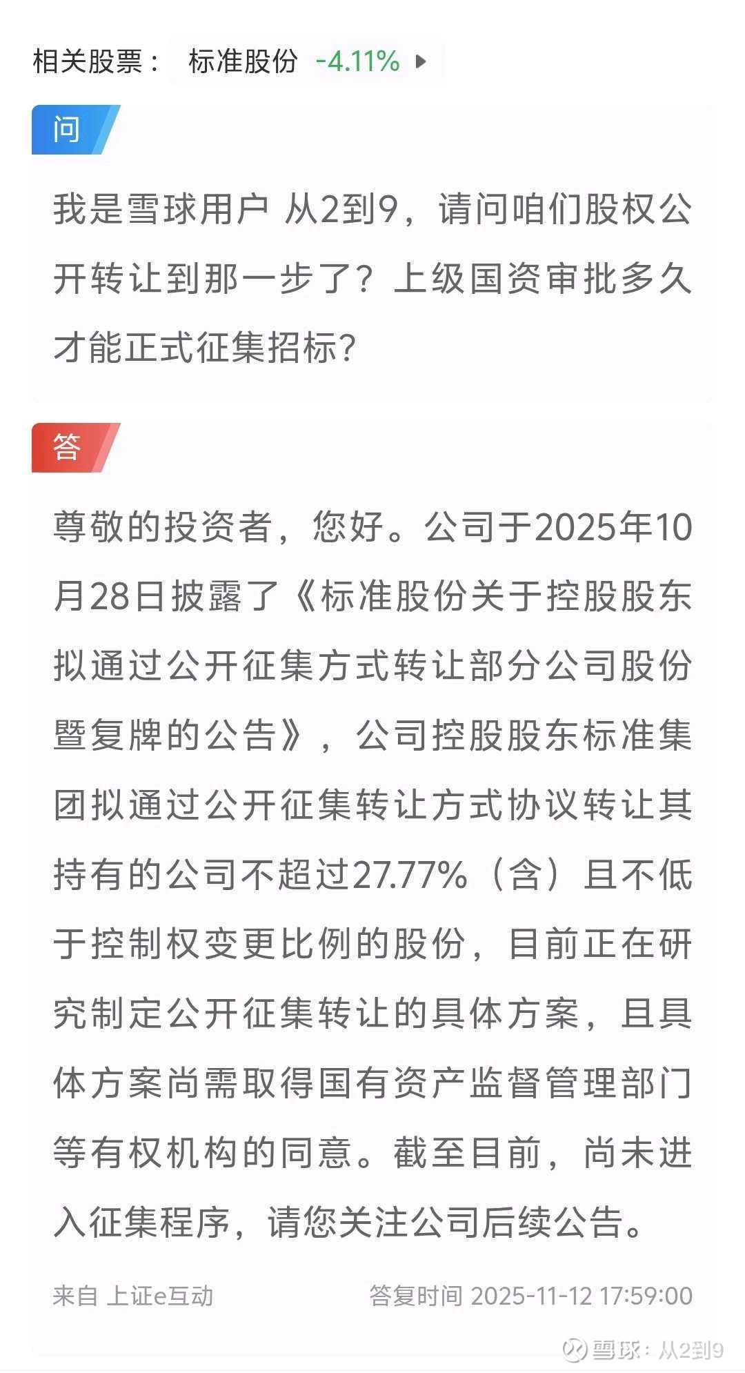 $标准股份(SH600302)$ “目前正在研究制定公开征集转让的具体方案,” 关键词,具体方案。这个具体方案已经制定了半个月。