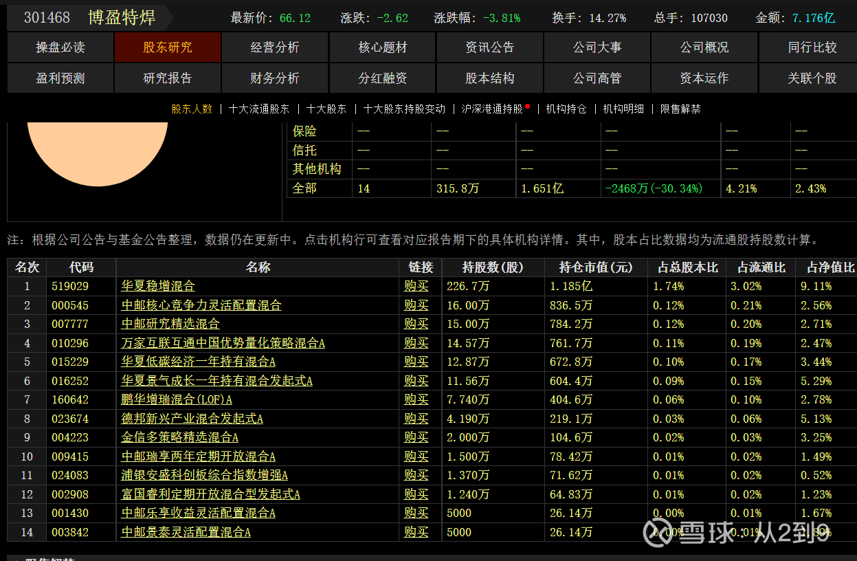 四季度公募火速进场。在公募四季度报告只公告前十大持仓。显示了一部分公募已经把byth纳入前十。在基金年报里面会显示全部持仓。预估有近百家公募会持仓BYTH。想提前知道答案的股民,可以去公司申请看股东名册,看看公募有多少。