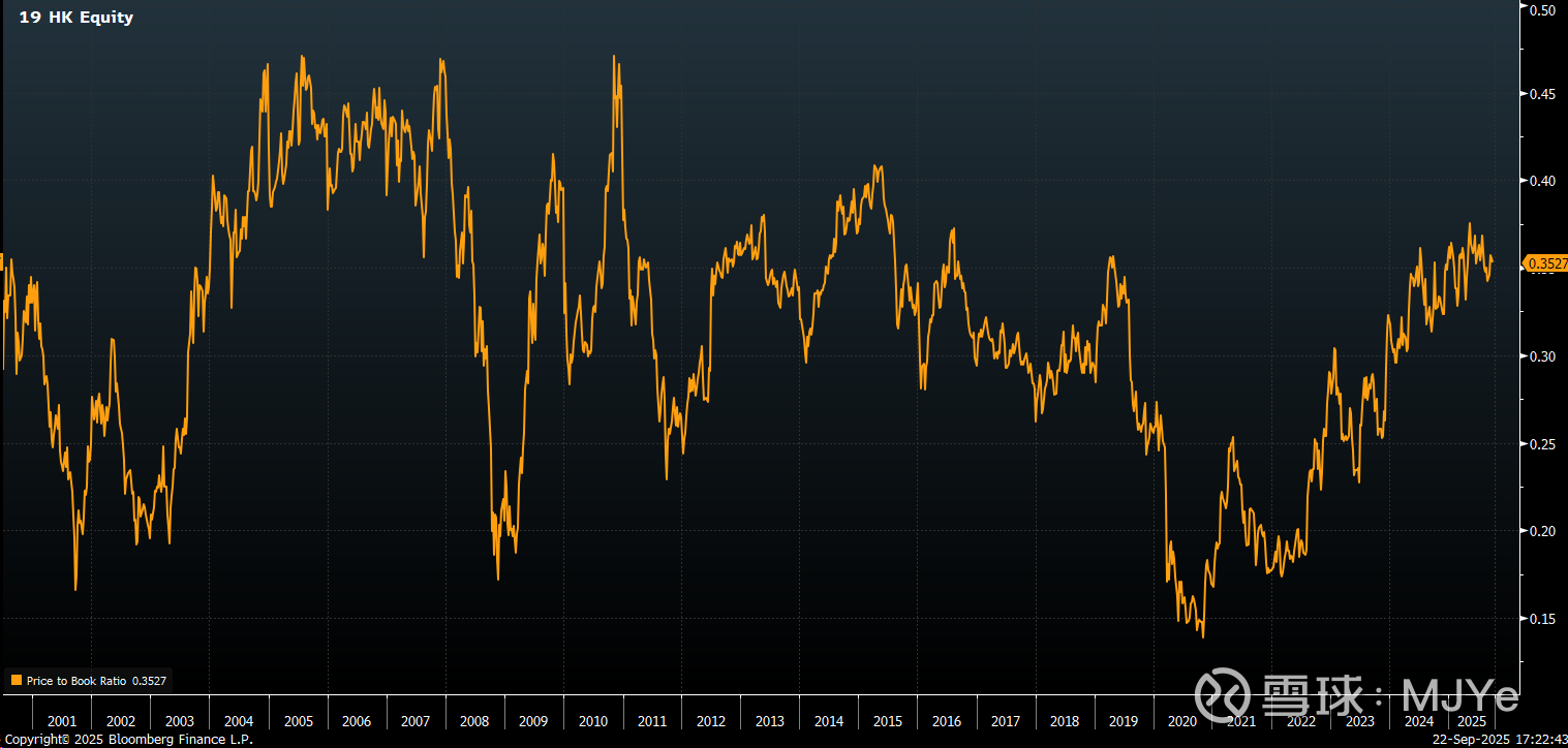 對於太古,我的看法比較單純。由於公司的業務頗為繁複,我會用非常簡單的市帳率估值法代替。