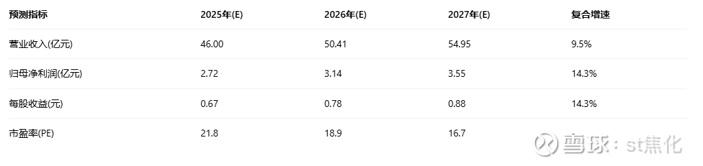 其他机构预测公司2023-2025年归母净利润为1.81/2.06/2.40亿元,同比+11%/14%/16%。这些预测均显示公司未来三年将保持稳健增长趋势,净利润增速高于营收增速,表明盈利能力进一步提升。