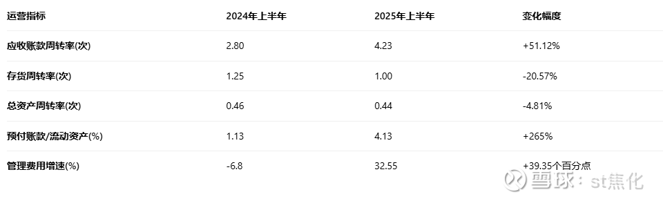 盈利质量分析方面,需要关注的是公司2025年上半年经营活动净现金流与净利润的比值为0.95,低于1,较2024年同期的1.47有所下降。这一变化主要由于应收账款增加及存货上升等因素导致,需密切关注其后续变化趋势。
