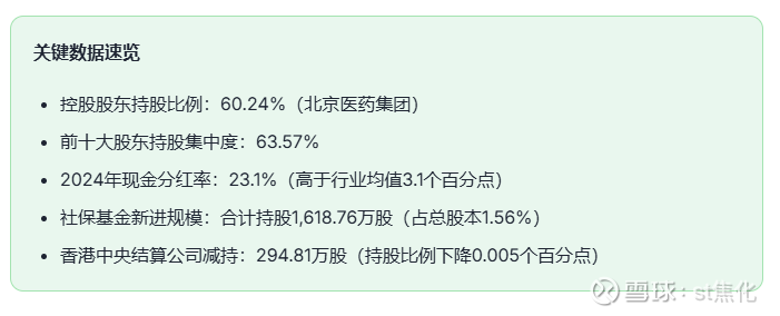 华润双鹤的股东结构呈现出高度集中且稳定的特征,控股股东华润集团通过北京医药集团有限责任公司持有60.24%的总股本,前十大股东合计持股比例达63.57%,为公司股权结构提供了坚实支撑。这种高集中度的股权结构不仅体现了央企背景下的资源整合优势,也为公司长期战略的稳定实施奠定了基础。作为实际控制人,华润集团在资金调度、渠道拓展等方面的支持,进一步强化了公司在医药行业的竞争地位。