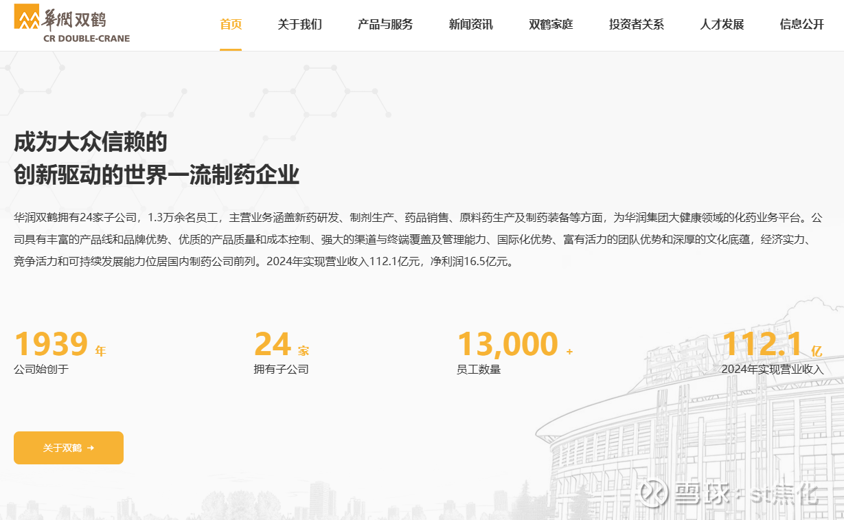 华润双鹤药业股份有限公司成立于 1997 年 5 月 16 日,同年 5 月 22 日在上海证券交易所上市,注册地与办公地均位于北京市,控股股东为北京医药集团有限责任公司,实际控制人为中国华润有限公司,具有鲜明的央企背景。公司专注于药品开发、制造与销售,所属申万行业为医药生物 - 化学制药 - 化学制剂,核心业务覆盖慢病、专科、输液及原料药四大领域,形成“原料药 + 制剂”一体化的全产业链布局。其中,慢病业务聚焦降压、降糖等领域,拥有复方利血平氨苯蝶啶片(0 号)等核心产品;专科业务涵盖儿科、肾科等赛道,毓婷等产品具备市场竞争力;输液业务以软袋(含直立式)产品为主导,在行业内保持领先地位。