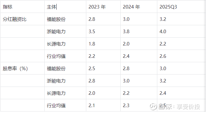 解析:股东回报能力突出,分红融资比达 3.2,股息率升至 3.0%,均显著高于行业均值及长源电力,接近浙能电力的高分红水平。机构预测 2026-2027 年股息率将达 3.1%-3.3%,具备稳健的长期配置价值。