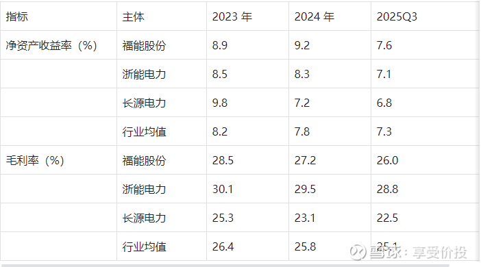 解析:盈利能力持续优于行业均值,净资产收益率三年稳居 8% 左右,毛利率虽略有下滑但仍高于长源电力,显示业务结构优势;与浙能电力相比,毛利率差距主要因火电占比差异,未来海风占比提升有望缩小差距。