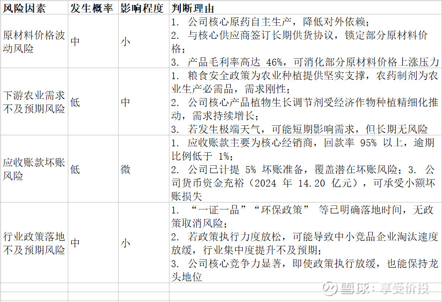 对公司影响:影响极小,且为正面影响。公司拥有 330 个农药登记证,为行业前列,且所有产品标签和说明书均已提前完成整改,符合政策要求;而中小竞品企业因登记证数量少、整改能力弱,将被淘汰,行业集中度提升,公司作为头部企业将受益于行业竞争格局优化。