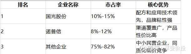 国内农药制剂行业属于充分竞争市场,行业集中度极低,A 股上市公司仅 10 余家,中小民营企业数量超 3000 家,大部分企业营收规模低于 1 亿元,以区域化、同质化产品竞争为主。行业竞争主要集中在产品质量、价格、渠道、品牌、技术服务五个维度:中小企业以低价竞争为主,产品同质化严重,缺乏技术和服务能力;头部企业(诺普信、国光股份、广信股份等)凭借技术、品牌、渠道优势,逐步提升市占率,行业马太效应显现,中小产能持续出清。从竞争格局看,植物生长调节剂、园林养护农药等细分领域集中度相对较高,除草剂、杀菌剂等通用领域竞争更为激烈。