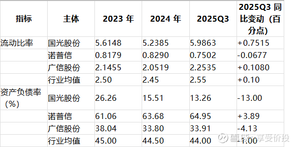 自身横向:流动比率小幅波动上升至 5.9863,资产负债率从 26.26% 降至 13.26%,连续三年下降,公司持续偿还负债,货币资金充裕,偿债能力持续提升;
