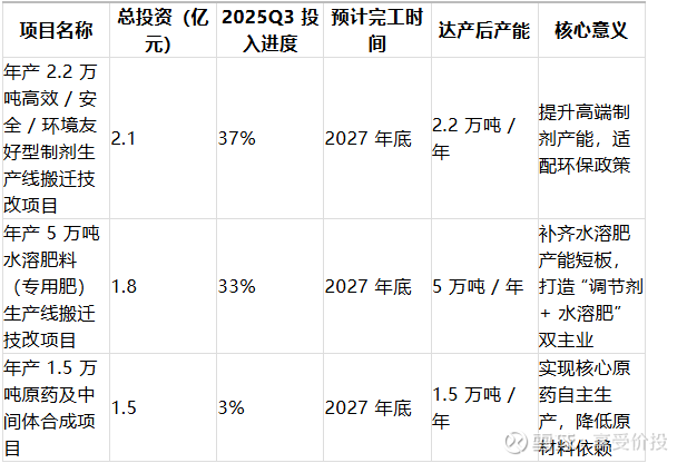 产能扩张:5 万吨水溶肥、2.2 万吨高效制剂生产线 2027 年底完工,2027-2028 年产能释放将成为营收核心增长点;
