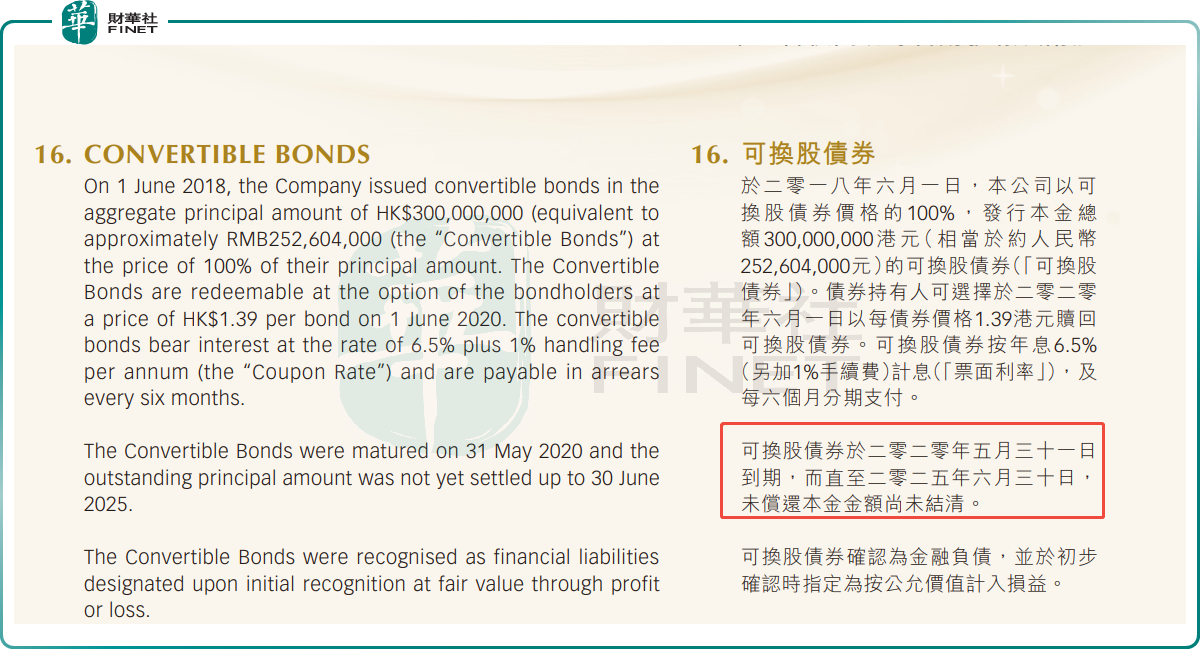 此外,2018年发行的可换股债券(2020年已到期)本金尚未结清。