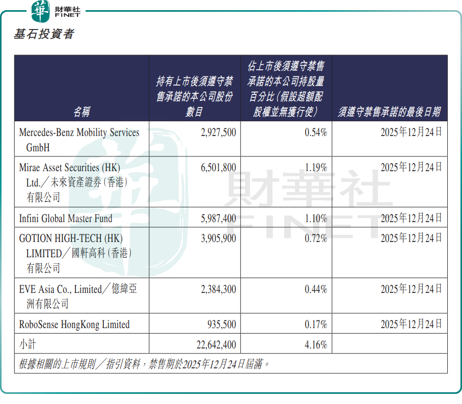 根据公告,曹操出行的基石投资者及公开发售前股东将于12月24日迎来大规模解禁,总计约1.03亿股,占总股本约18.98%。若以当前股价测算,解禁市值金额约41亿港元。