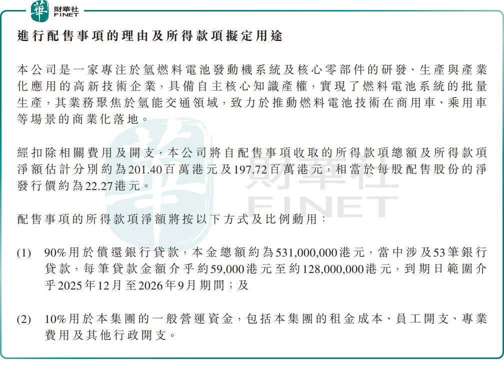 1)90%用于偿还银行贷款,本金总额约为5.31亿港元,当中涉及53笔银行贷款,每笔贷款金额介乎约5.9万港元至约1.28亿港元,到期日范围介乎2025年12月至2026年9月期间;