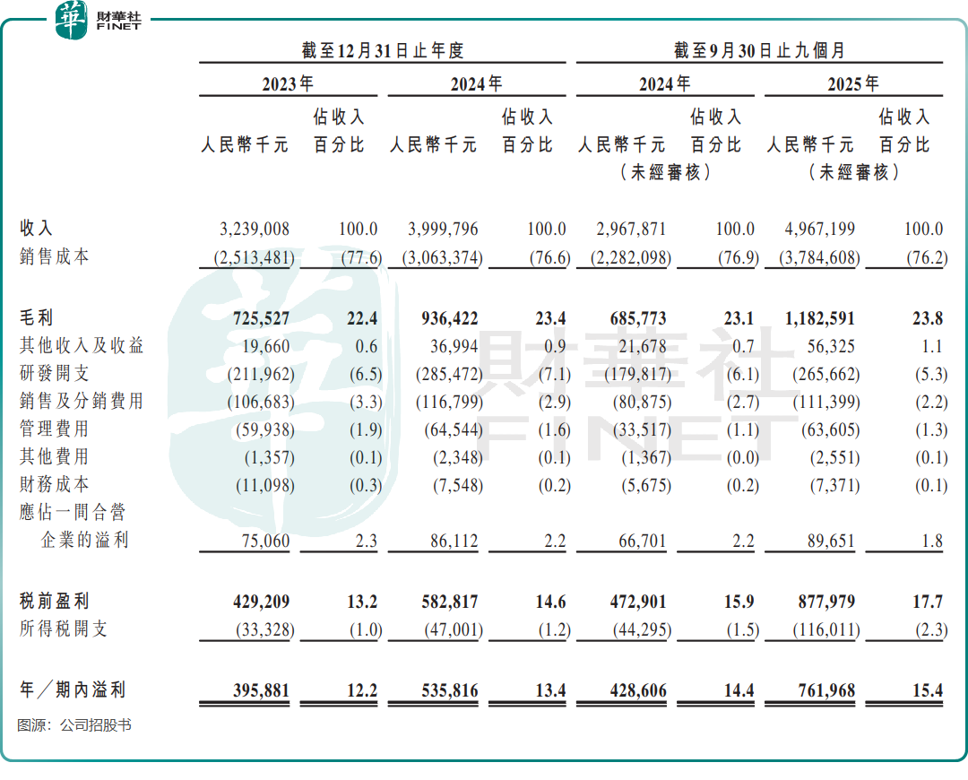 受益于行业红利,玉柴船电近年业绩表现亮眼。财务数据显示,2023年至2024年,公司收入从32.39亿元(单位人民币,下同)增长至40亿元,期内利润从3.96亿元提升至5.36亿元;2025年前9个月,收入达49.67亿元,期内利润达7.62亿元,增速更为显著。