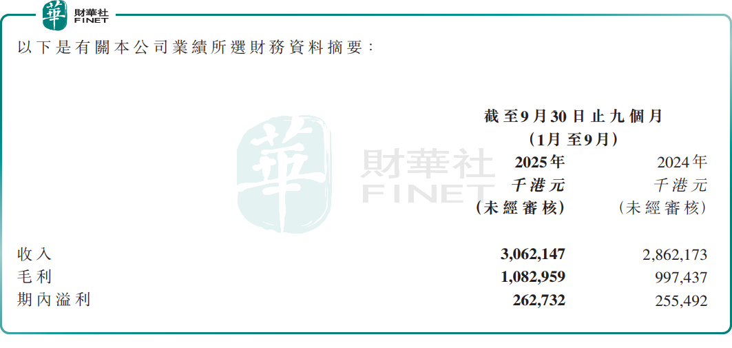 据截至2025年9月30日止9个月的财务数据显示,日清食品实现总收入30.62亿港元,同比增长6.99%:净利润2.63亿港元,同比增长2.83%。