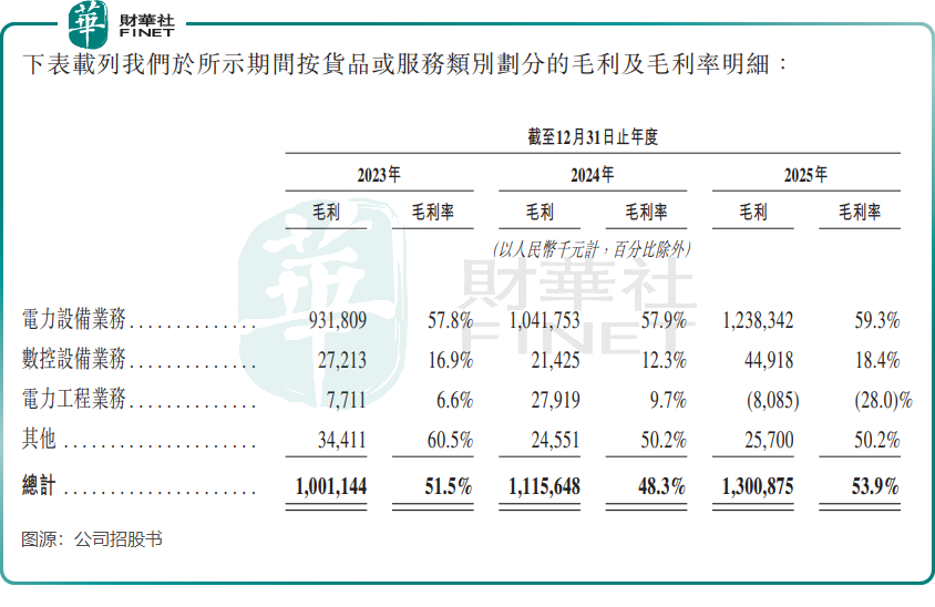 乘着这股东风,华明装备的收入增长在过去几年相当强劲,2023年、2024年、2025年收入分别为19.46亿元(单位人民币,下同)、23.09亿元、24.12亿元;毛利分别为10.01亿元、11.16亿元、13亿元,毛利率分别为51.5%、48.3%及53.9%,净利润为5.51亿元、6.2亿元、7.2亿元,对应的净利率分别为28.3%、26.8%及29.8%。
