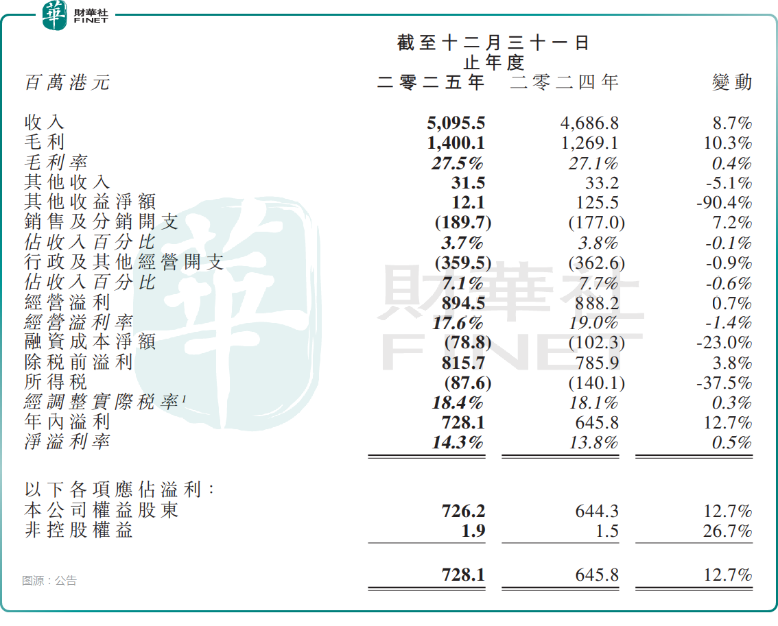 3月10日午间休市,鹰普精密发布了业绩公告:2025年公司收入总额达50.96亿港元,同比增长8.7%,创下历史最高纪录;股东应占溢利7.26亿港元,同比大增12.7%,同样刷新历史峰值;经调整股东应占溢利6.90亿港元,同比增长12.1%,同样创下历史新高,业绩表现亮眼。