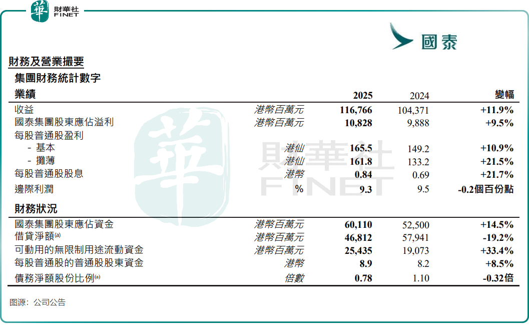 2025年全年,国泰航空和香港快运合共接载乘客逾3600万人次,按年增长27%。主要是受惠于集团客运运力于年内显著提升,可用座位公里数较2024年上升逾25%。
