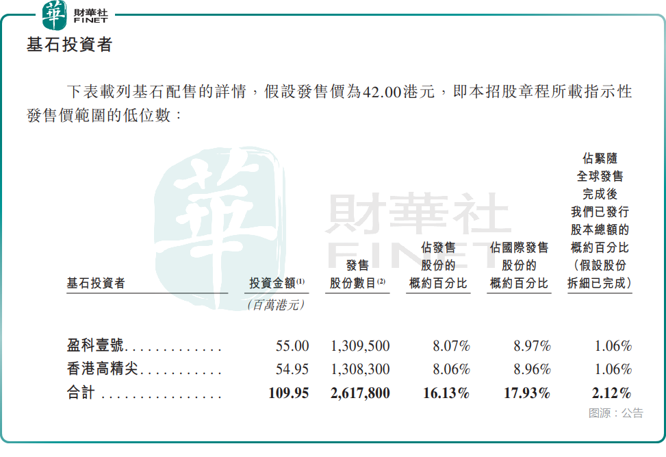 值得注意的是,泽景股份此次的发行获得了基石投资者的“保驾护航”,引入了盈科壹号(香港)有限公司、香港高精尖产业(北京)发展投资有限公司,拟合计认购约1.10亿港元的发售股份。