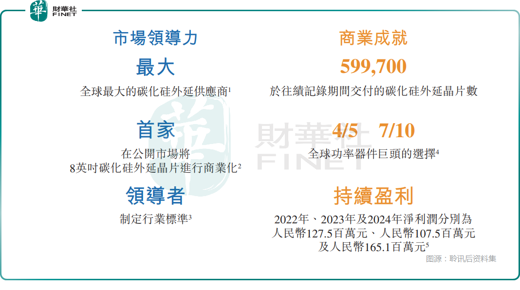 根据灼识咨询的报告,2023年起按年销售片数计公司是全球最大碳化硅外延供应商,2024年全球市场份额超30%,全球前5大碳化硅功率器件巨头中4家、前10大中7家都是其客户。