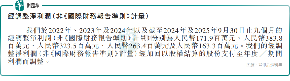 在收入端波动较大,2022年至2024年,公司的收入从4.41亿元(人民币,下同)飙升至11.43亿元,再降至9.74亿元。收入的波动亦影响利润端的表现,2022年至2024年,其净利润分别为1.28亿元、1.08亿元、1.65亿元;经调整净利润分别约为1.72亿元、3.84亿元、3.24亿元。